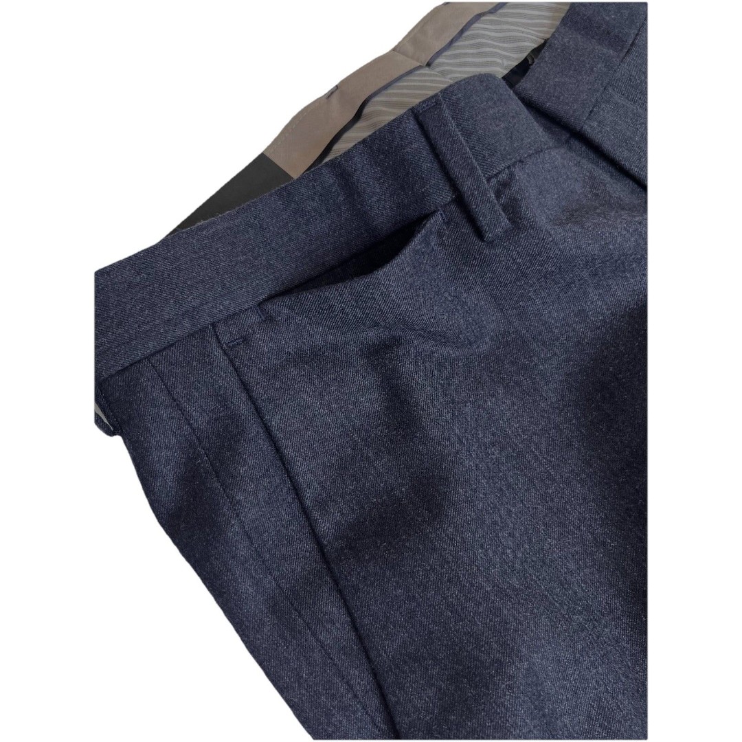 These Banana Republic Tailored Slim Fit Wool Men's Lined Dress Pants in size 36/30 are a sleek and stylish choice for various occasions. Made from 95% wool and 5% spandex/elastane, these pants feature a solid blue color and a mid-rise fit. They have a flat front, straight leg style, and a 5-pocket design, making them both fashionable and functional. With a slimming fit and a high-quality knit fabric, these pants are perfect for formal events, business meetings, or even a party or cocktail occasion during the winter, fall, or spring seasons.