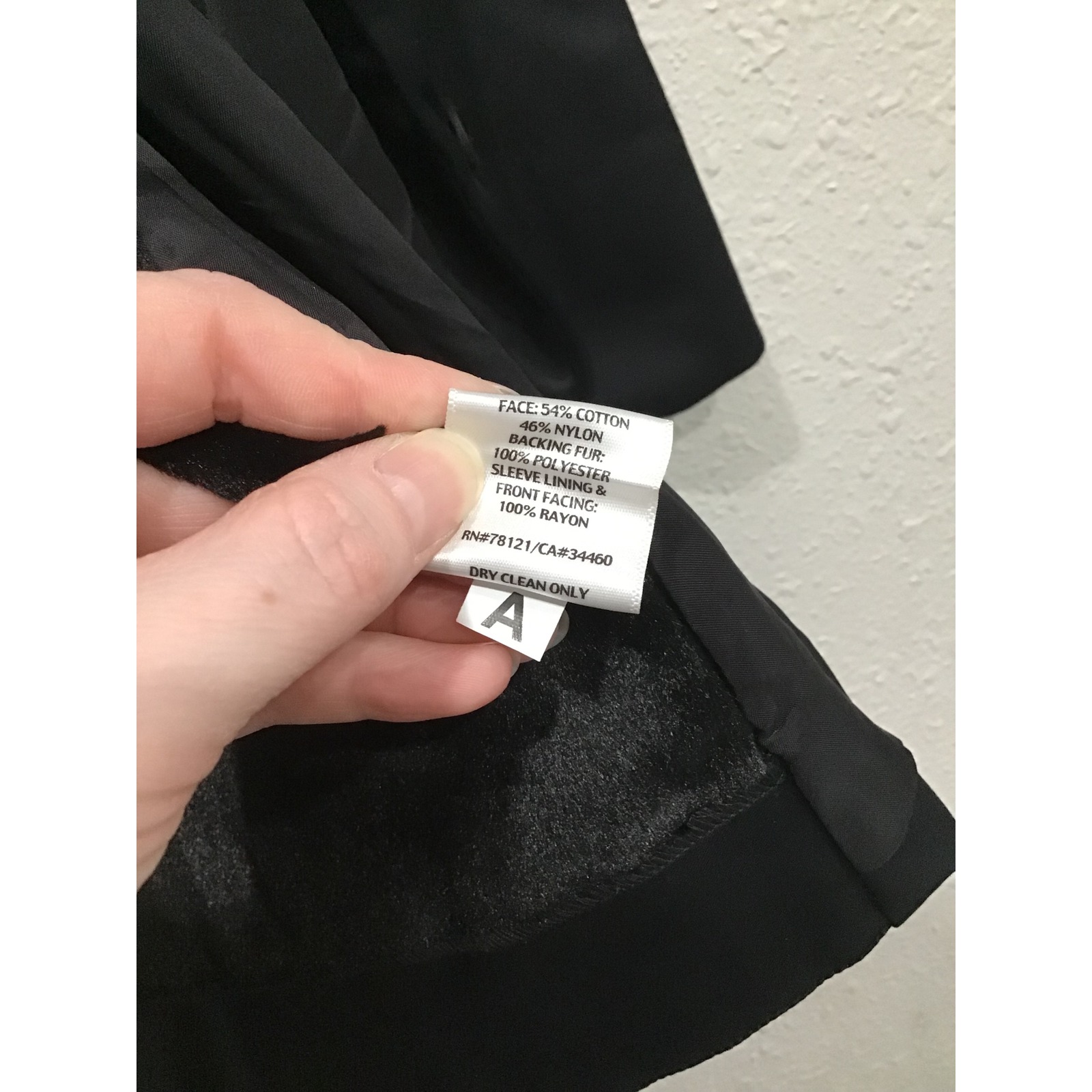 Condition: Very Good Pre-Owned Condition -- shows a few small marks on one sleeve that may come out with dry cleaning. No holes or major flaws.