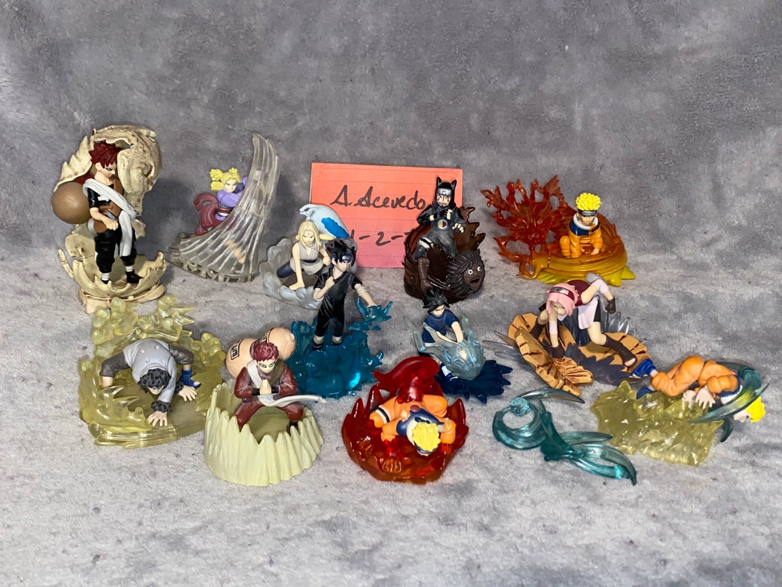 Assorted Naruto mini figure lot. Figures may need a light cleaning. They were purchased second hand and previously displayed before being put into storage for several years. Please check all photos and zoom in if needed. Not for individual sale. Will entertain all reasonable offers.