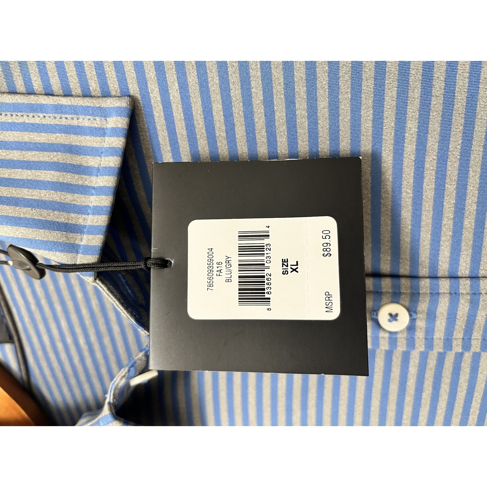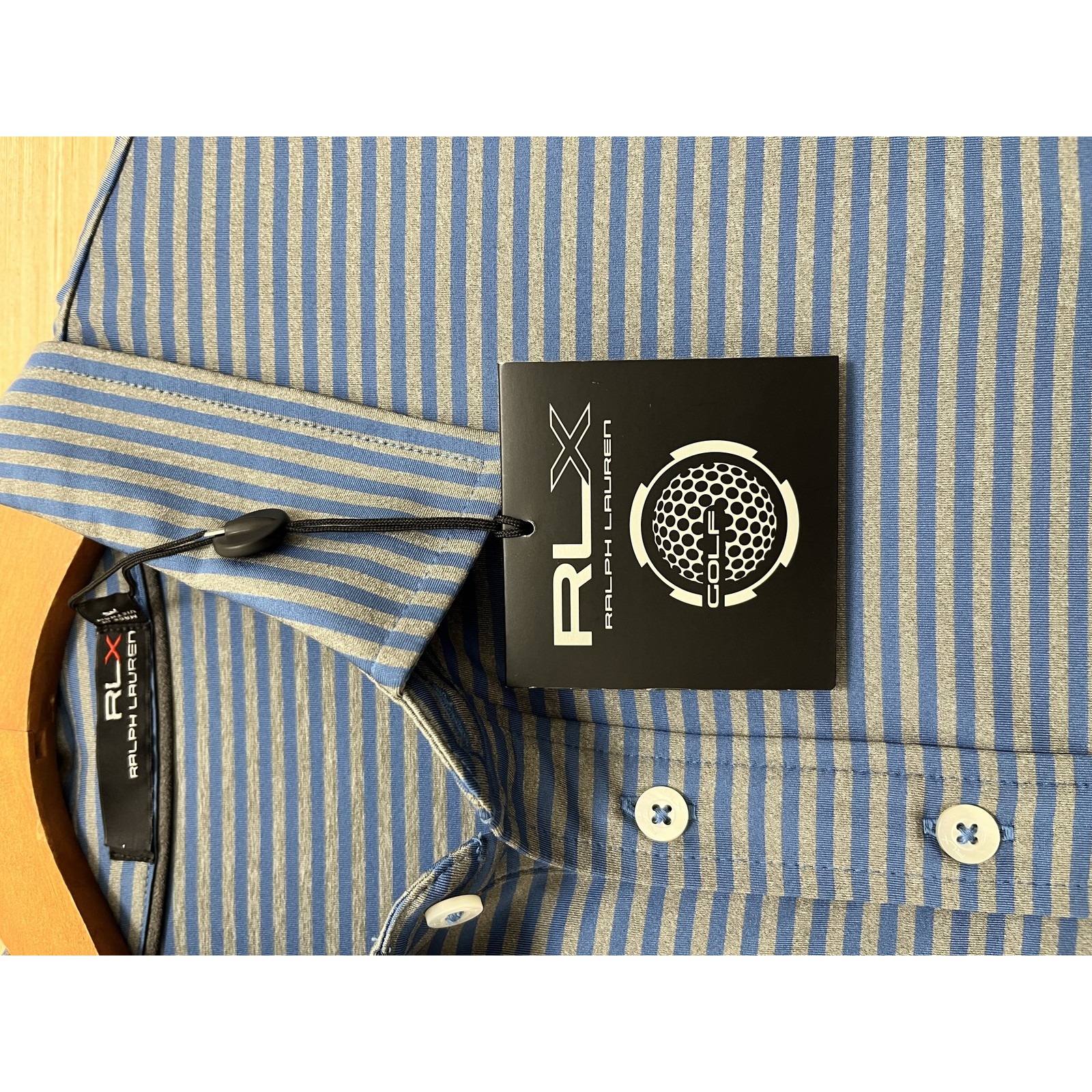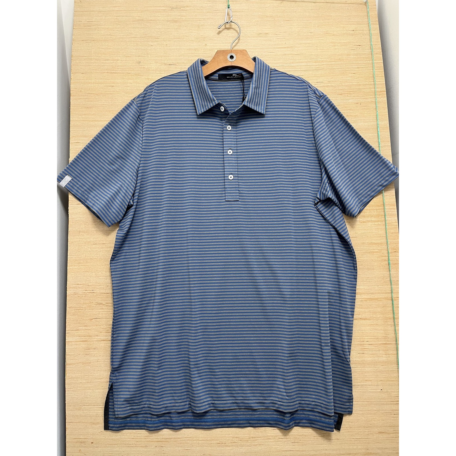 Ralph Lauren RLX Polo Shirt Mens XL Blue Gray Striped Golf Performance