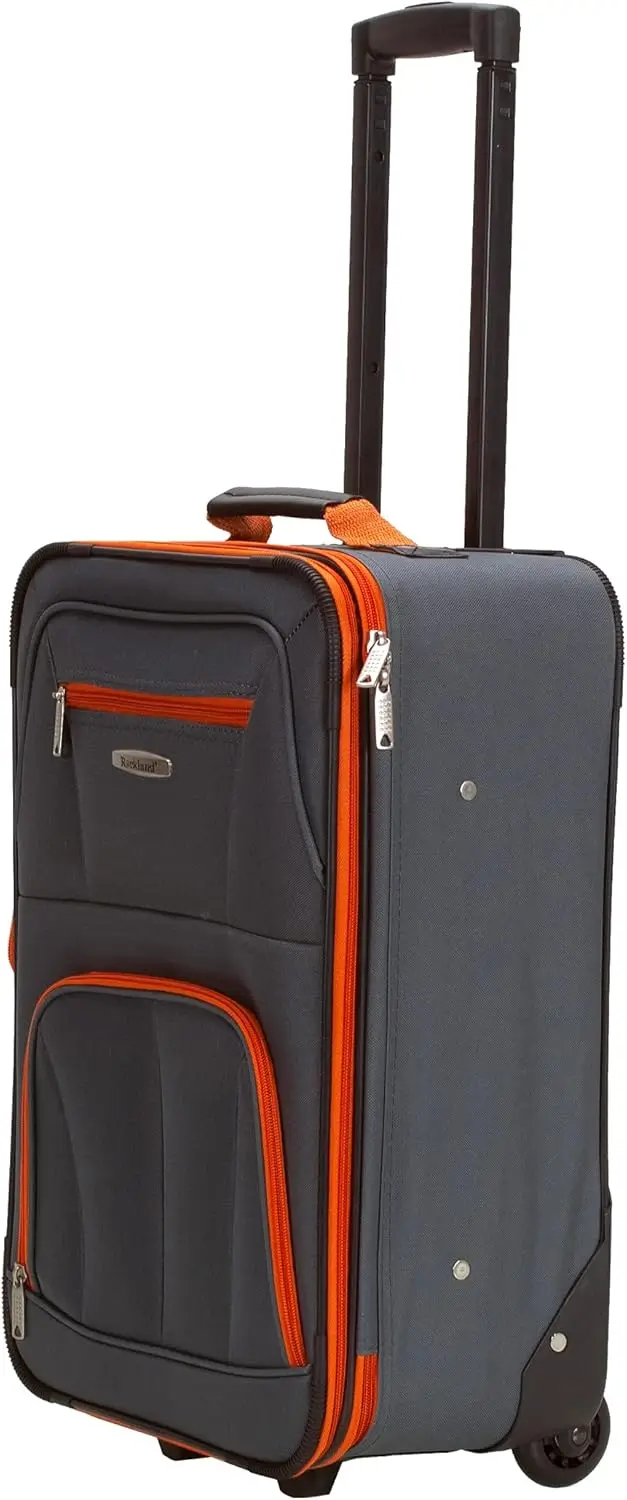 This beautiful deluxe 4-piece expandable luggage set is manufactured with a patented heavy duty EVA hi-count fabric. This set is perfect for the serious and experienced traveler! Manufactured with the very best heavy duty polyester and PVC backing, this luggage set is designed for the traveler on the go and comes with three expandable uprights and a flight tote bag. It comes packed with features including: an inside retractable handle, EZ-Roll in-line skate wheels, back zippered secured pockets, top and side comfort grip handle, stability bars at the bottom to avoid tilting, and locks & keys. Upright features include: Clear in-line skate wheel system for smooth ride Push-button self-locking internally stored retractable handle system Ergonomic and comfortable padded top and side grip handles Two front full size zipper-secured pockets Three internal organizational pockets for all your traveling needs Each upright's interior is fully lined with a durable and elegantly imprinted lining Elegant silver pewter heavy duty industrial hardware Carry-On Flight Tote Bag features include: Elegantly imprinted full interior lining Detachable and adjustable non-slip shoulder strap Spacious main compartment Maximum strength industrial hardware 19-inch Carry-on Upright: 20 inches high x 12. 5 inches wide x 7. 5 inches expandable to 10 inches deep (with wheels). 6 lbs. 24-inch Upright: 24 inches high x 16 inches wide x 10 inches expandable to 12 inches deep. 8 lbs. 28-inch Upright: 28 inches high x 18 inches wide x 12 inches expandable to 14 inches deep. 9 lbs. Carry-On Flight Tote Bag: 14 inches wide x 11 inches high x 5 inches deep – 1 lb.