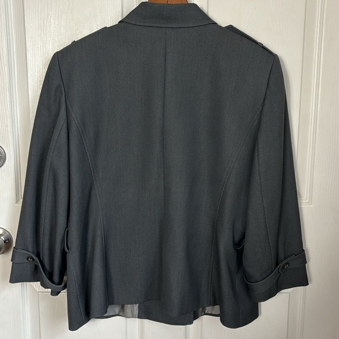 Elevate your style with this elegant gray triple -breasted jacket. Perfect for any occasion, this jacket offers a sophisticated look with its classic design. A must-have addition to your wardrobe.