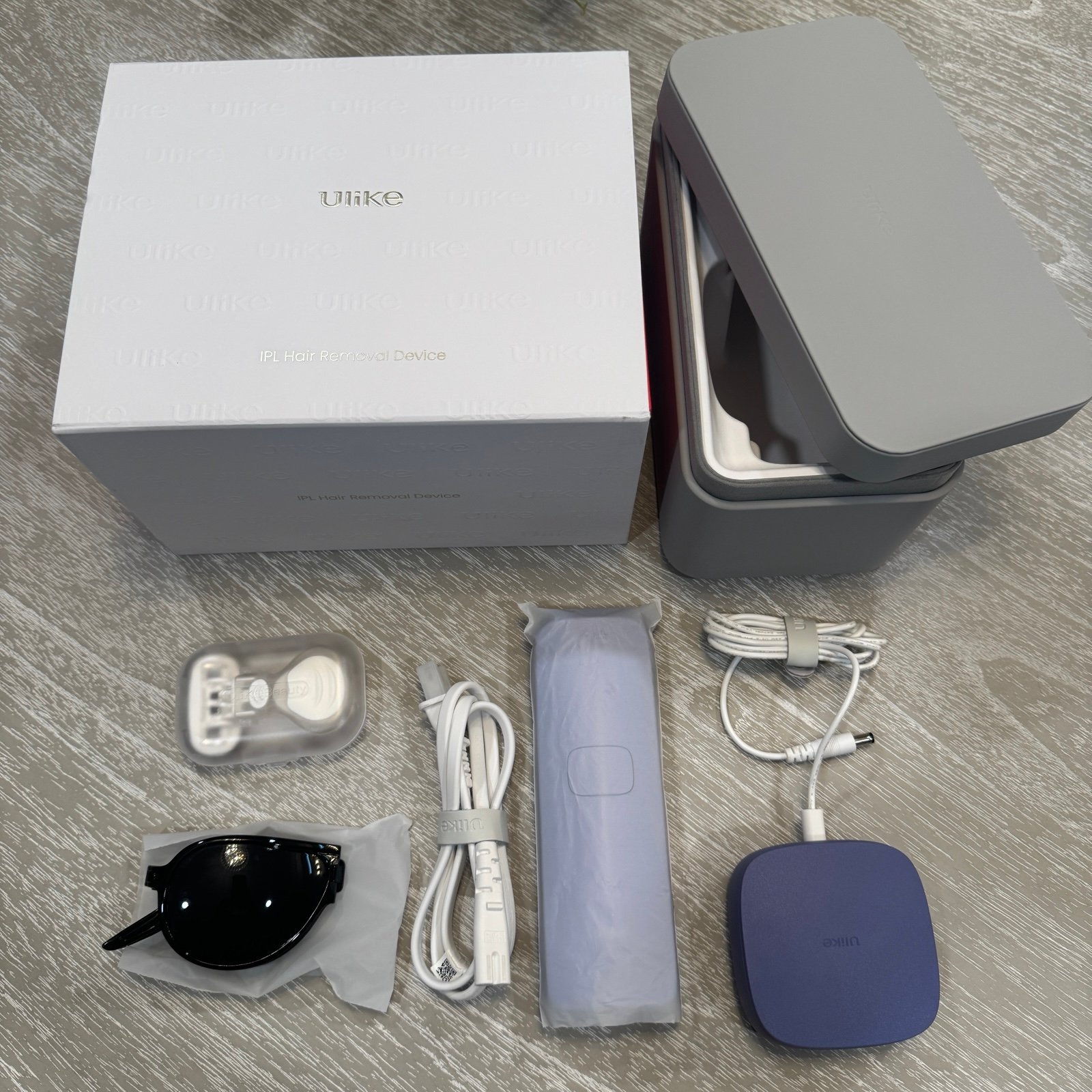 Comes with a mini travel razor, protective eyewear, device, travel container, original box