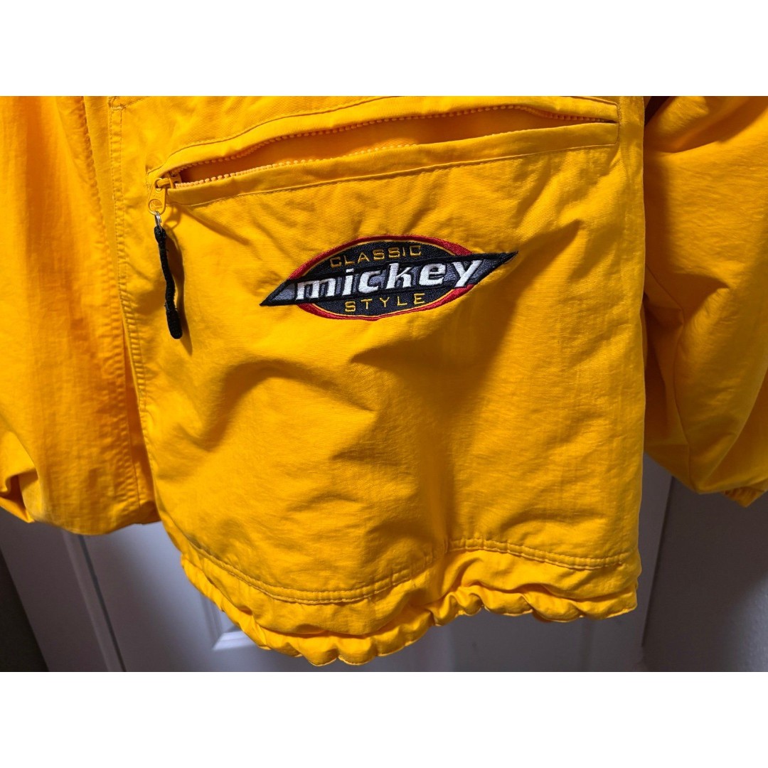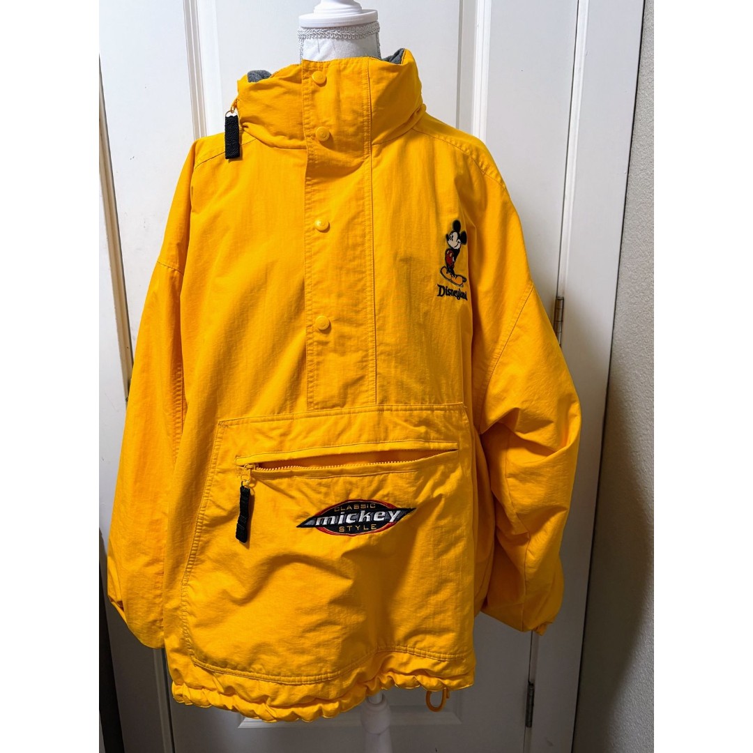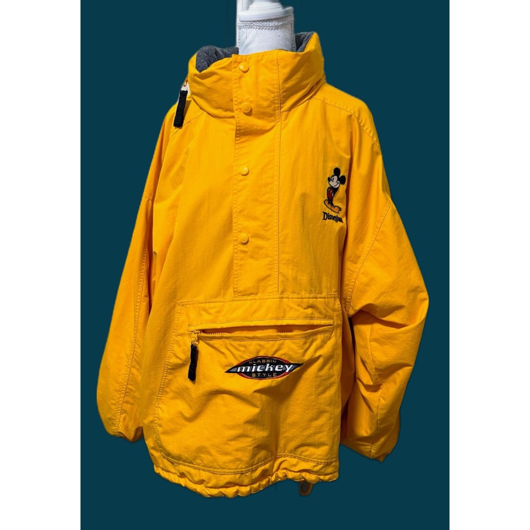 Vintage 90s Mickey quarter zip pull over a puffer/ski jacket. This is fleece lined, has stomach pouch. Hood tucks into back of zip up collar. Excellent lightly used condition. Cuffs of jacket are the only spots of noticed wear, see photos.
