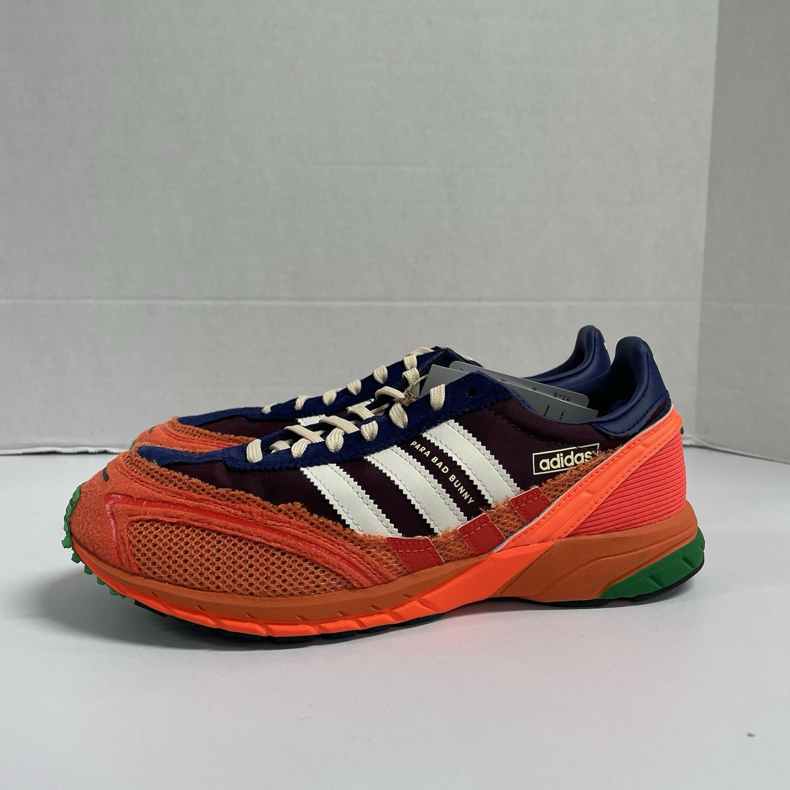 The Adidas Bad Bunny Adizero SL72 High Fashion sneaker in size 8 is a stylish and athletic shoe inspired by the renowned artist, Bad Bunny. Featuring a vibrant Orange color, this sneaker is designed with a mesh upper material for breathability and comfort. The shoe is part of the adidas adizero product line, known for its high-performance capabilities, making it a perfect choice for men looking to make a fashion statement while staying active.