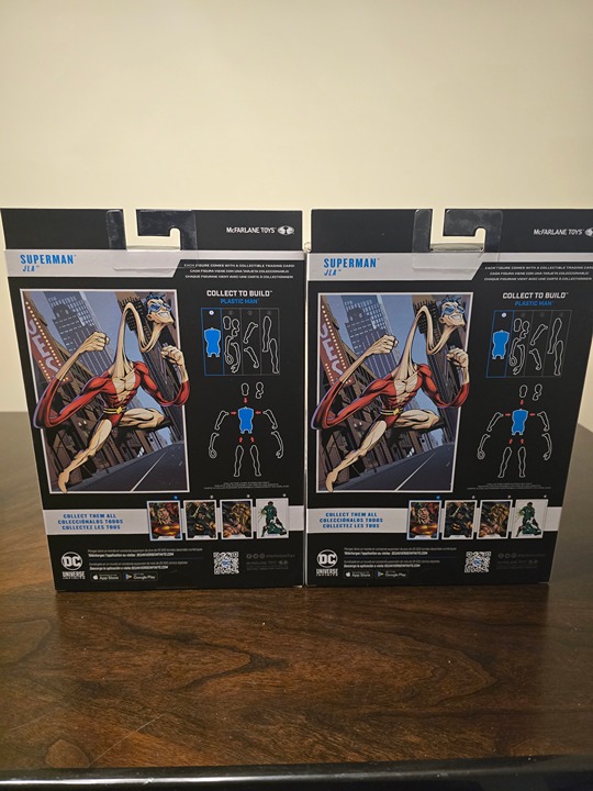 McFarlane Platinum red and standard Blue Superman from the Plastic Man Build a Figure wave. This is a one-stop great find for any collector. Some slight storage box wear MAY be present. Please do not purchase if PERFECT box condition is important to you. The packing process will be documented via photos and video.